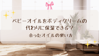 生活雑貨ベビーオイルをボディクリームの代わりに保湿できる?余ったオイルの使い方 「ボディクリームが切れた…でも、家にベビーオイルが余ってる!」そんなとき、代用できるのか気になりますよね。実はベビーオイルは、正しく使えば一時的な保湿ケアにしっかり役立つアイテム。ただし、塗る順番や肌の状態によっては、逆に乾燥やベタつきの原...生活雑貨