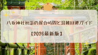 初詣 八坂神社初詣の屋台時間と混雑回避ガイド【2026最新版】 京都・祇園の中心に鎮座する「八坂神社」は、毎年100万人以上が初詣に訪れる京都屈指の人気スポット。厳かな空気の中で新年の願いを込めたあと、参道にずらりと並ぶ屋台で一息つくのも楽しみのひとつですよね。とはいえ、「屋台っていつからやってるの?」... 初詣